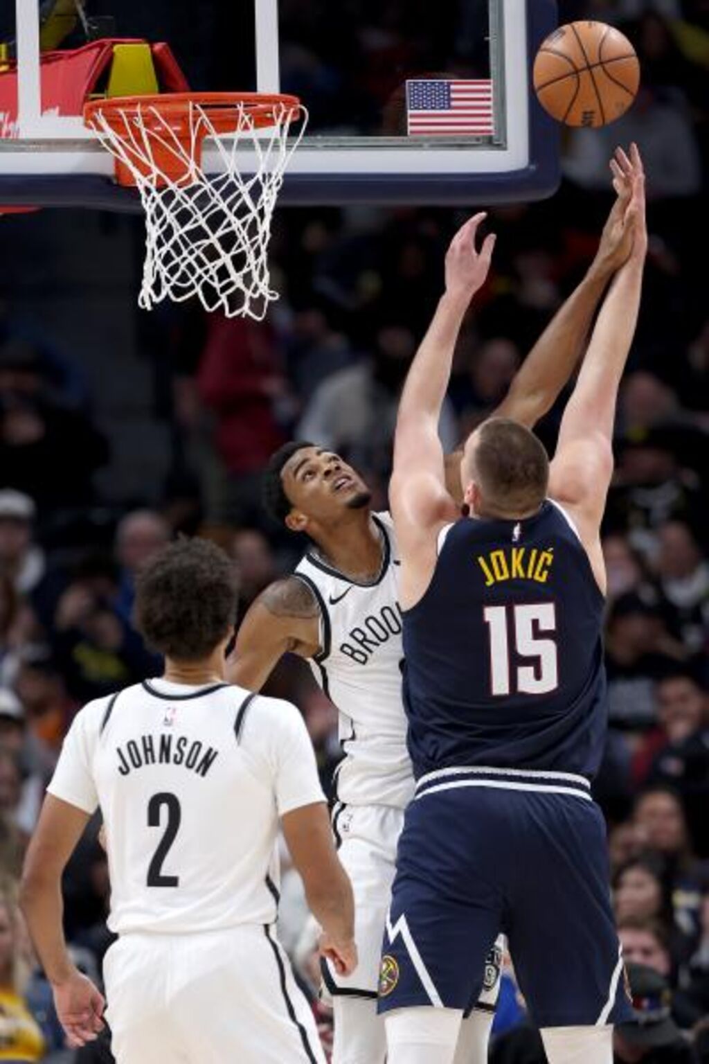 | Nikola Jokic (#15), des Denver Nuggets, face à Nic Claxton, des Brooklyn Nets, lors d'un match de NBA, le 14 décembre à Denver. Photo : AFP/VNA/CVN |