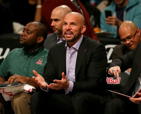 | L'ancien joueur de NBA, Jason Kidd, alors entraîneur de Milwaukee, le 20 mars 2015 lors d'un match à Brooklyn face aux Nets. |