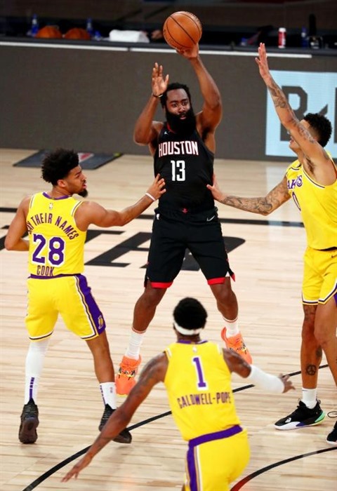 | James Harden a inscrit 39 points pour Houston face aux Los Angeles Lakers le 6 août à Orlando. |