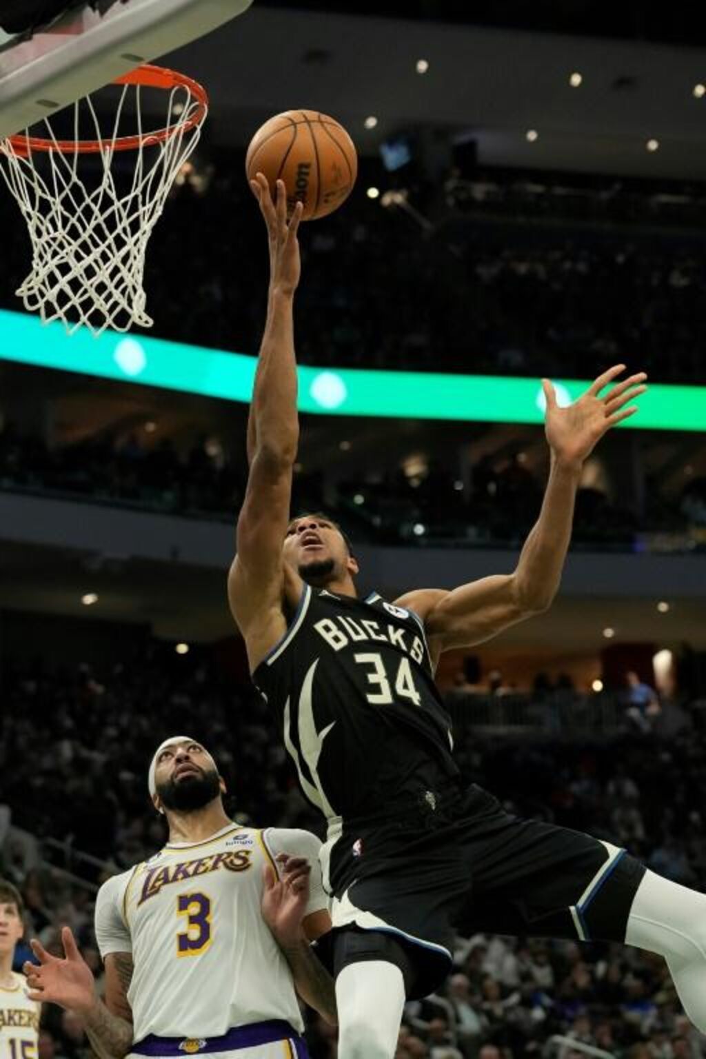 | Giannis Antetokounmpo (droite), des Milwaukee Bucks, tente de marquer un panier devant Anthony Davis (gauche), des Los Angeles Lakers, pendant la rencontre NBA entre les Bucks et les Lakers à Milwauke. Photo : AFP/VNA/CVN |