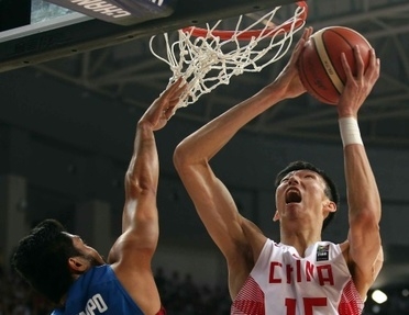 | Le Chinois Zhou Qi (droite)) lors de la finale du Championnat d'Asie face aux Philippines, le 3 octobre 2015 à Changsha. |