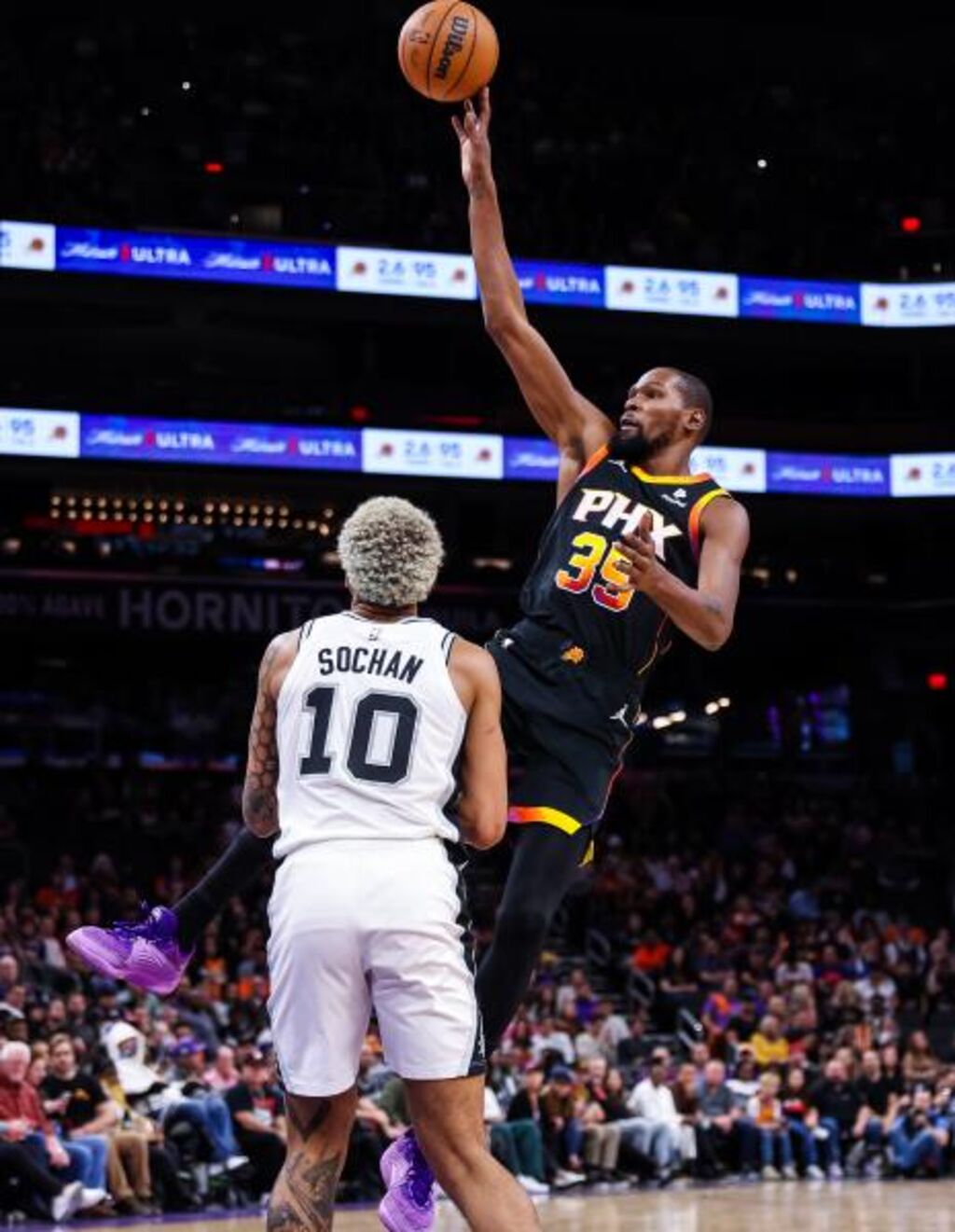 Le duel du soir a opposé le jeune Français à l'une des grandes stars de la ligue, l'Américain Kevin Durant (35 ans), double champion NBA (2017 et 2018), toujours orphelin des deux autres étoiles des Suns, Devin Booker et Bradley Beal, blessés.