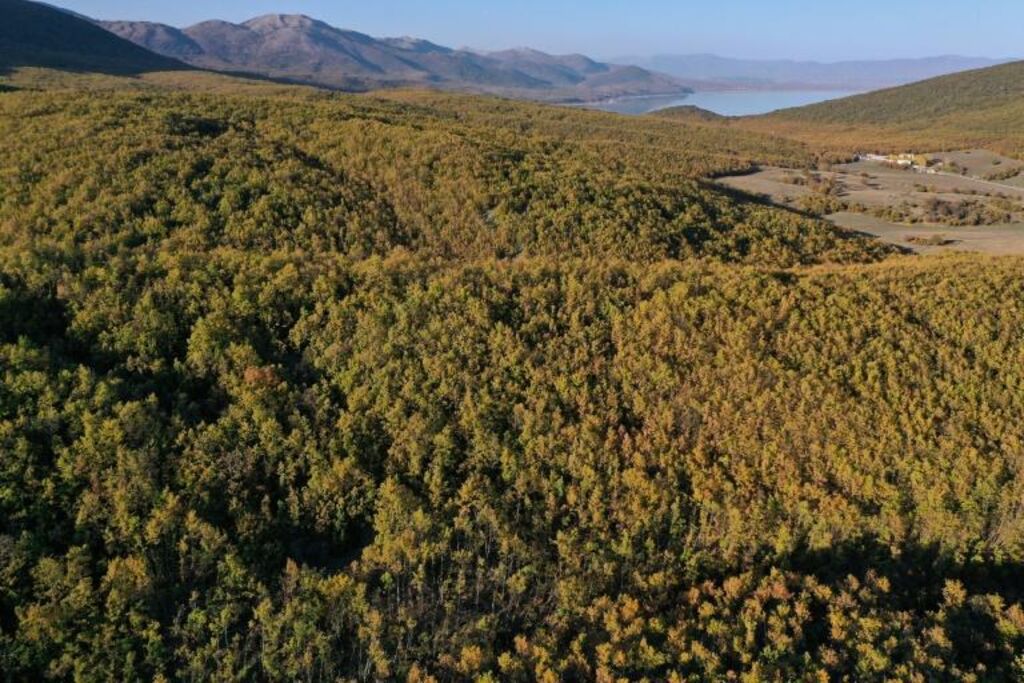 | Vue aérienne du Parc national de Prespa, près de Korçë, où vivent quelques lynx des Balkans, le 1er novembre dans le Sud-Est de l'Albanie. |