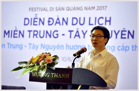 | Le vice-Premier ministre Vu Duc Dam lors du forum sur le tourisme du Centre et du Tây Nguyên. |