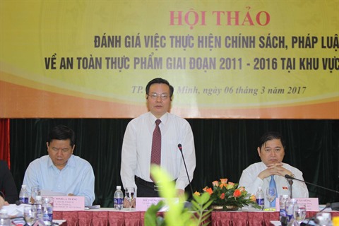 | Le colloque "Évaluation de la mise en œuvre des politiques et des lois sur la sécurité alimentaire pour la période 2011-2016 dans le Sud du Vietnam", en mars 2017 à Hô Chi Minh-Ville. |