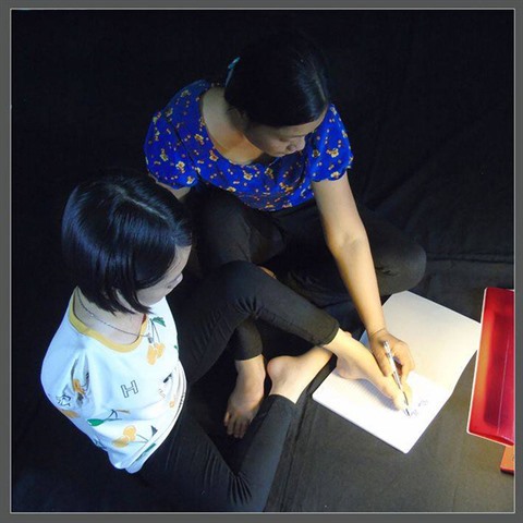 Les années passent puis vient le moment où Tham est en âge d’être scolarisée. Comme les autres enfants de son âge, elle dit à sa mère vouloir aller à l’école. "Quand elle me l’a demandé, je lui ai répondu: +Privée de bras, comment vas-tu faire pour écrire comme tes camarades? C’est alors qu’elle m’a répondu sans hésitation et avec force:+Avec mes pieds, maman!+".