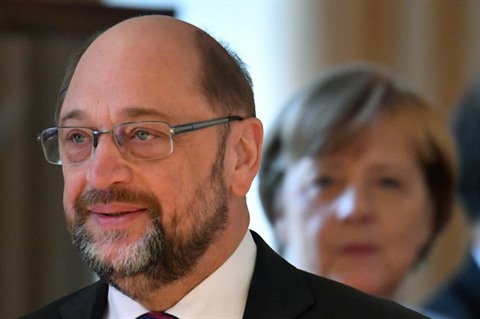 | Martin Schulz, chef des sociaux-démocrates (gauche), et la chancelière allemande Angela Merkel, le 9 janvier à Berlin. |