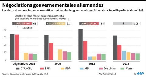 Selon les médias, ils pourraient s'accorder jeudi 11 janvier sur un document jetant les bases d'une future coopération gouvernementale. Mais les sociaux-démocrates ne devraient dévoiler que vendredi 12 janvier s'ils recommandent une nouvelle coalition.