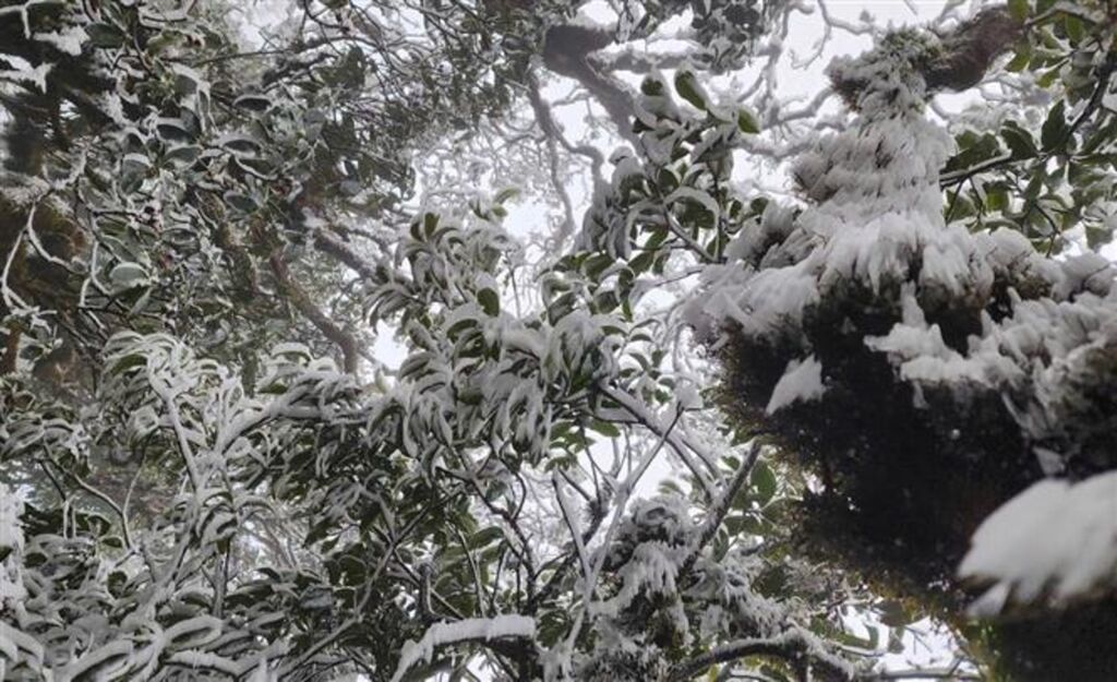 | Il neige dans la nuit du 18 mars jusqu'à 07h30 le 19 mars au sommet de la montagne de Tà Xua, province septentrionale de Yên Bai. |