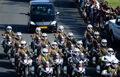 | Le convoi funéraire transportant le cercueil de Nelson Mandela dans les rues de Pretoria, le 12 décembre. |