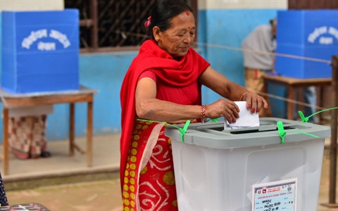 | Dans un bureau de vote de Thimi, près de Katmandou, le 14 mai 2017. |