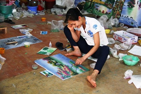 Il faut suivre minutieusement chaque trait, remplir chaque surface, même la plus petite, sans mélanger les couleurs, sans déborder. Combien d’heures penchées sur l’œuvre qui progressivement prend corps pour devenir ce tableau coloré qui va trôner dans le salon d’une maison hanoïenne ou d’ailleurs ? Là encore, quelle patience pour donner le temps à la pierre de devenir œuvre d’art, dans laquelle le grain posé avec tant d’attention aura disparu au profit de l’ensemble.