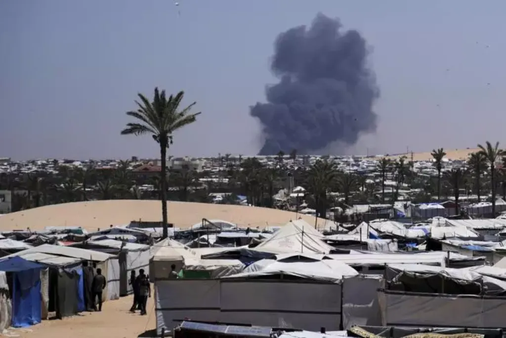 | De la fumée s'élève suite à une frappe aérienne de l'armée israélienne au sud de Khan Younis, à Gaza, le 21 mai. |
