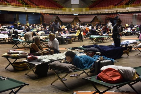 | Des habitants réfugiés dans le centre d'accueil Roberto Clemente Coliseum à San Juan, Puerto Rico, le 19 septembre, à l'approche de l'ouragan Maria. |