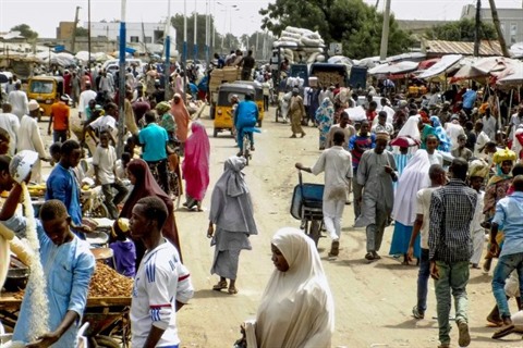 | Vue d'ensemble du marché de Maiduguri régulièrement visé par le groupe islamiste nigérian Boko Haram. |