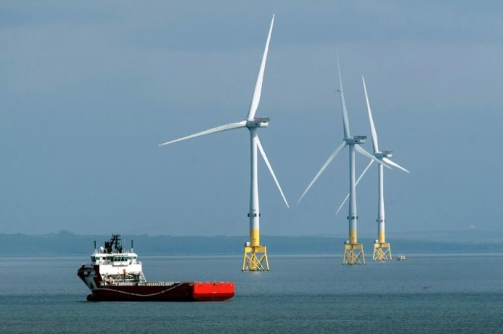 | Un parc éolien au large d'Aberdeen, le 29 avril 2022 dans le nord-est de l'Écosse. |