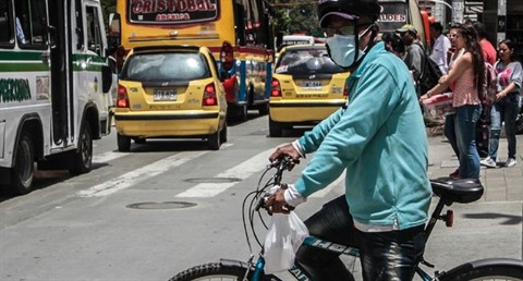 | Un cycliste de Medellin en Colombie porte un masque pour se protéger de la pollution. |