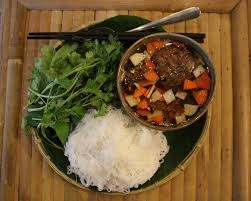 Ce plat succulent exprime la finesse de la gastronomie vietnamienne. Le lard et les boulettes de porc haché salé grillés à la braise sont ensuite plongés dans un bol de sauce de saumure aigre-douce (nuoc mam, sucre, vinaigre et épices), avec de la papaye verte marinée, quelques bouts de carotte et un peu de piment. Le tout est accompagné de vermicelles de riz, de salade fraîche et de feuilles de menthe. Ce plat est en vente partout à Hanoi. Vous pouvez le déguster avec un verre de thé glacé, et admirer l’agitation des rues hanoïennes.
