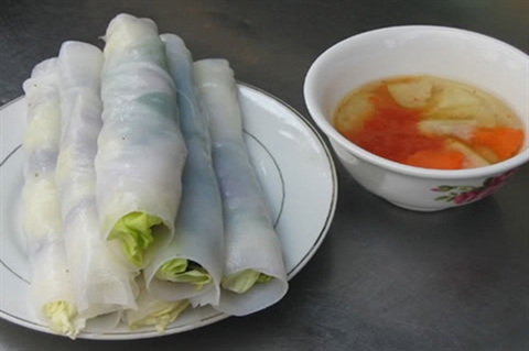 Vous ne manquerez pas de déguster le pho cuôn, un épais rouleau de feuille de pâte de riz garni de viande de bœuf bouillie et de quelques brins de coriandre. Pour en profiter pleinement, trempez-le dans la sauce de saumure aigre-douce servie avec, accompagné d’un peu de salade.