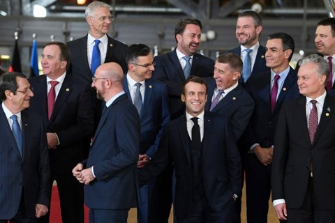 | Les dirigeants européens prennent place pour une photo de famille pendant le Sommet de l'UE à Bruxelles le 12 décembre. |