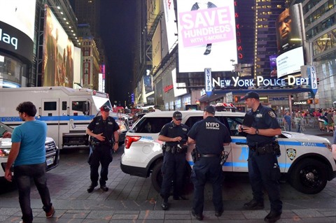 Caméras de surveillance omniprésentes; consigne "Si voyez quelque chose, dîtes quelque chose" rappelée à tout moment, policiers en uniforme dans tous les lieux publics, New York, forte de 38.000 policiers, met les moyens.