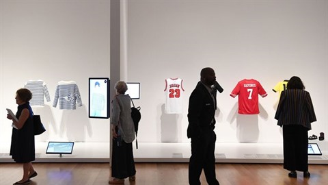 | Des visiteurs admirent des pièces marquantes de la mode lors de l'exposition "La mode est-elle moderne?", le 26 septembre au MoMa à New York. |