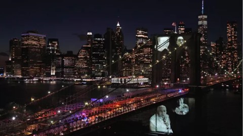 | De grandes photos en noir et blanc des victimes ont été projetées sur l'emblématique Brooklyn Bridge. |