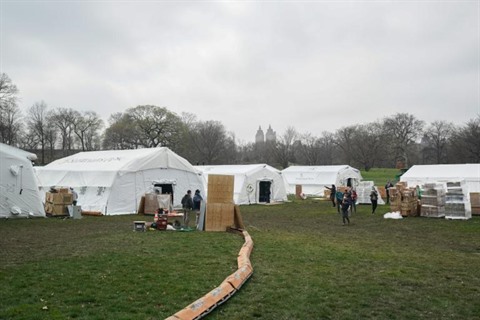 | Une douzaine de tentes dressées à Central Park par l'organisation caritative Samaritan’s Purse, à New York le 31 mars |