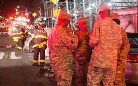 | Des équipes de secours à New York, le 17 septembre 2016, après une explosion qui a fait 25 blessés, dont aucun en danger de mort. |