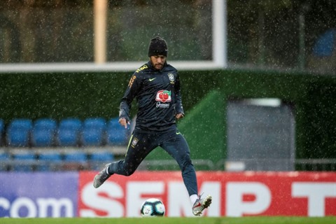 | Le Brésilien Neymar en séance d'entraînement à Teresopolis le 3 juin. |