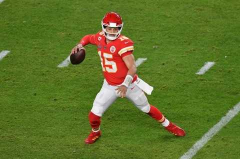 | Le quarterback de Kansas City Patrick Mahomes lors du Super Bowl, le 2 février à Miami (États-Unis). |