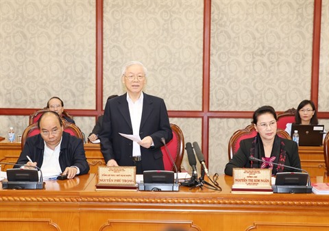 | Le secrétaire général du PCV et président de la République, Nguyên Phu Trong, lors de la séance de travail avec les autorités de la province centrale de Nghê An. |
