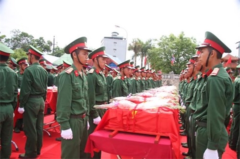 | Cérémonie d’inhumation des restes de soldats volontaires et experts vietnamiens tombés au Laos, le 16 mai à Nghê An (Centre). |