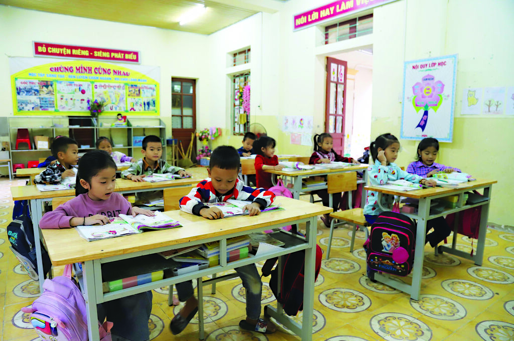 | Dans une classe de l’École primaire de Nga My, village de Vang Môn. |