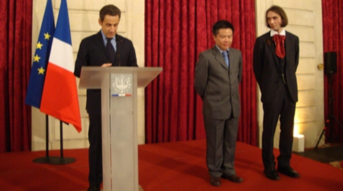 | Le Professeur Ngô Bao Châu (au centre) reçoit la Légion d'honneur à l'Elysée des mains du président Nicolas Sarkozy |