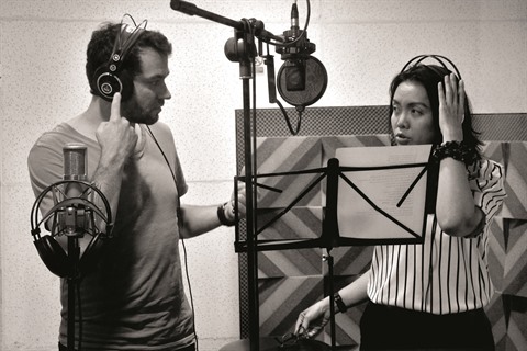 | Ngoc Ánh et Cédric Drouard, organisateur du concours "Les francophones ont du talent", en 2016. |