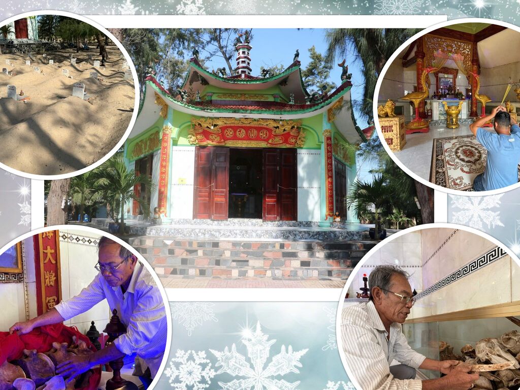 Niché sous les filaos, en bord de mer, ce lieu abrite les sépultures de baleines, appelées avec respect "Ông" ou "Ông Nam Hai", considérées comme des divinités protectrices des marins.