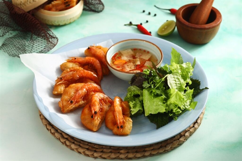 | Le gâteau aux crevettes de Hà Nội fait partie des centaines de plats étonnants du restaurant Ngon Garden, où les habitants et les délégations de haut rang aiment se rendre. |