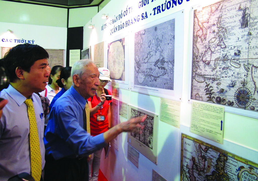 | De nombreuses expositions ont été organisées pour présenter travaux de recherche et cartes anciennes collectionnées par Nguyên Đinh Đâu. |