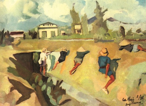 | L’oeuvre "La guérilla La Haye s’exerçant au tir" du peintre Nguyên Dô Cung. |