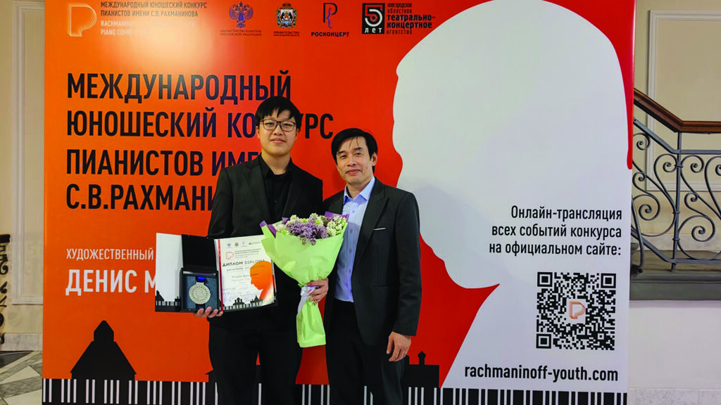 | Duc Kiên (gauche) et Huy Phuong au Concours international de piano Rachmanioff pour les jeunes en 2023 à Veliky Novgorod, en Russie. |