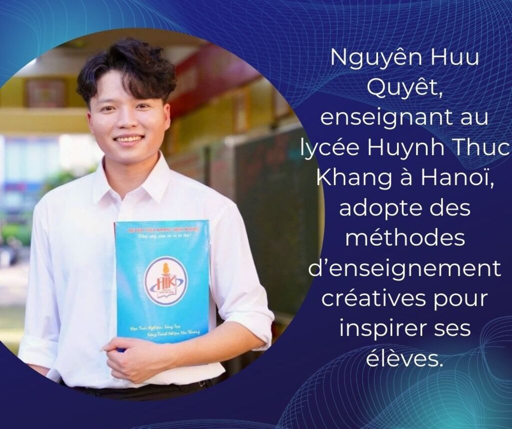 Phan Nhu Hùng, recteur du lycée Huynh Thuc Khang, loue son dévouement : "Quyêt insuffle un souffle nouveau à nos méthodes éducatives, répondant parfaitement aux exigences des réformes pédagogiques actuelles."
