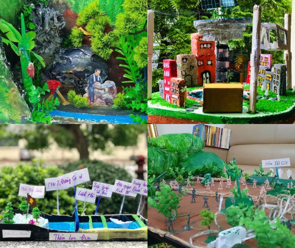 Chaque été, Quyêt conçoit des outils pédagogiques à partir de matériaux recyclés. Il a notamment créé une maquette de la bataille de Diên Biên Phu à partir de carton et de bouteilles en plastique pour illustrer un cours sur le rôle des citoyens dans la défense nationale.