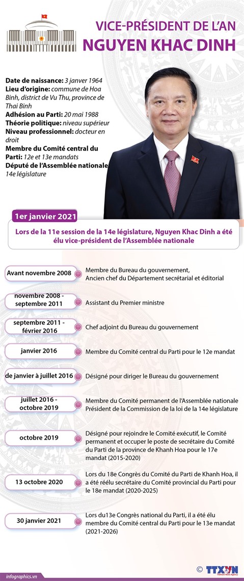 Lors de la 11e session parlementaire de la XIVe législature, Nguyên Khac Dinh a été élu vice-président de l’Assemblée nationale.
