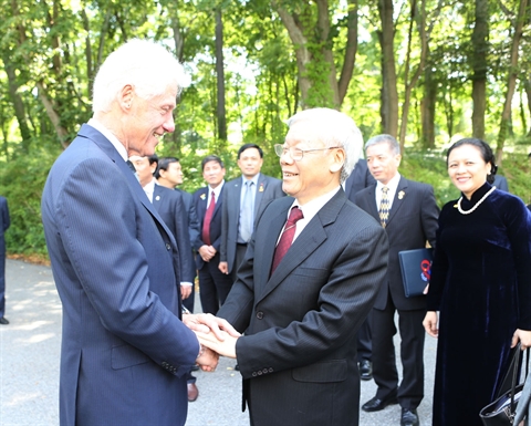 Pour sa part, le secrétaire général Nguyên Phu Trong a remercié M. Bill Clinton et son épouse de leurs contributions importantes au développement des relations de coopération multiforme entre le Vietnam et les États-Unis durant 20 années passées. Selon lui, les Clinton sont toujours considérés comme de grands amis du peuple vietnamien.
