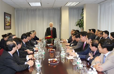 | Le 10 juillet également, le secrétaire général Nguyên Phu Trong a rencontré les membres de la mission permanente du Vietnam auprès de l’ONU. Photo : Tri Dung/VNA/CVN |