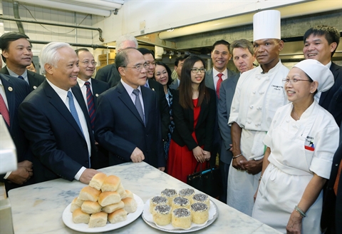 | Nguyên Sinh Hùng (2e, à gauche) a visité le 5 septembre l'hôtel Omni Parker House de Boston. |