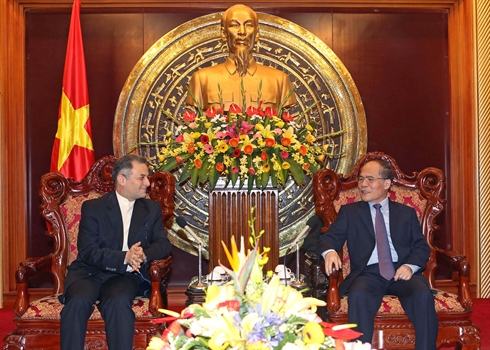 | Le président de l'AN Nguyên Sinh Hùng (à droite) a reçu le 20 février à Hanoi l'ambassadeur iranien Seyed Javad Ghavam Shahidi |