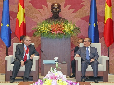 Recevant mardi 31 mars à Hanoi le vice-président du Parlement européen Dimitrios Papadimoulis, présent au Vietnam pour la 132e Assemblée de l'Union interparlementaire (IPU-132), Nguyên Sinh Hùng a exprimé sa satisfaction devant le développement large et profond des relations entre le Vietnam et l’UE lors de ces 25 dernières années, avant de souligner le rôle important du Parlement européen dans le renforcement des relations entre le Vietnam et l'UE.