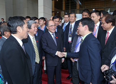 | Le président de l'AN vietnamienne, Nguyên Sinh Hùng (à gauche), rencontre le 26 novembre à Hanoi des journalistes aséaniens. |